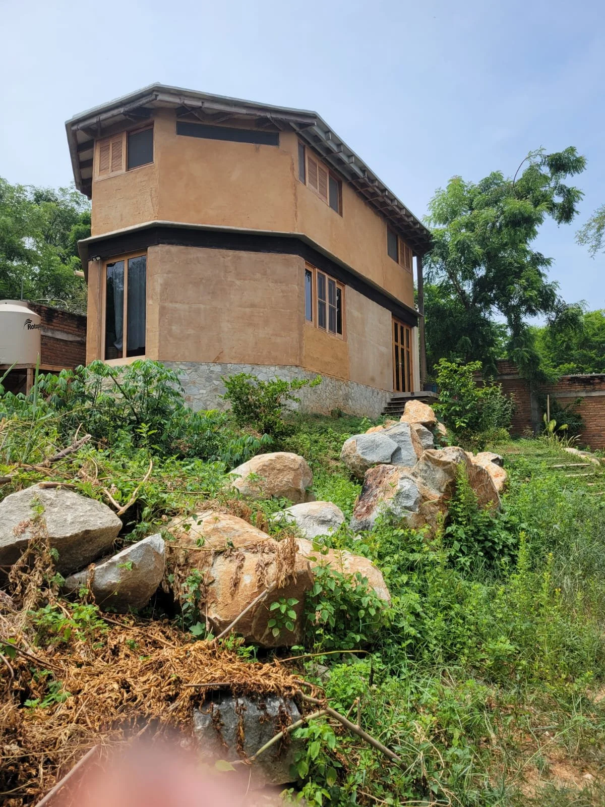 The temazcal is made from mud mixed with straw and dried grass and has a wooden frame. The geodesic shape of the temazcal shifts the energy of the ceremony slightly. The shape is made up of a bunch of triangles, a shape from sacred geometry. The way the prayer disburses while in the ceremony is noticibly differnt than many other temazcals. It also conducts directly from the earth to the cosmos through the point at the top. The temazcal seats 14 people comfortably.